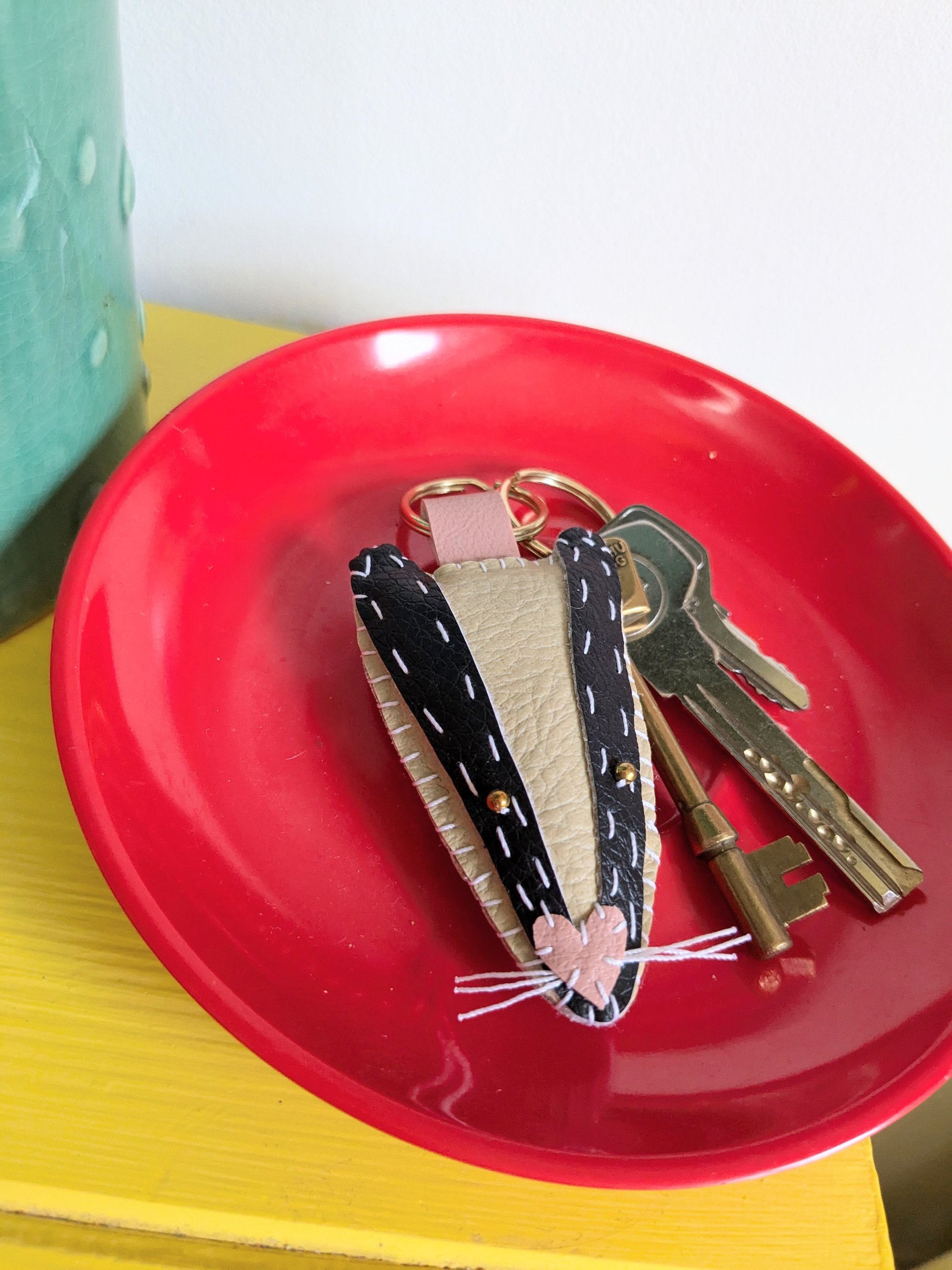 * Hand stitched beige and black faux leather badger with gold beady eyes and pink heart shaped nose