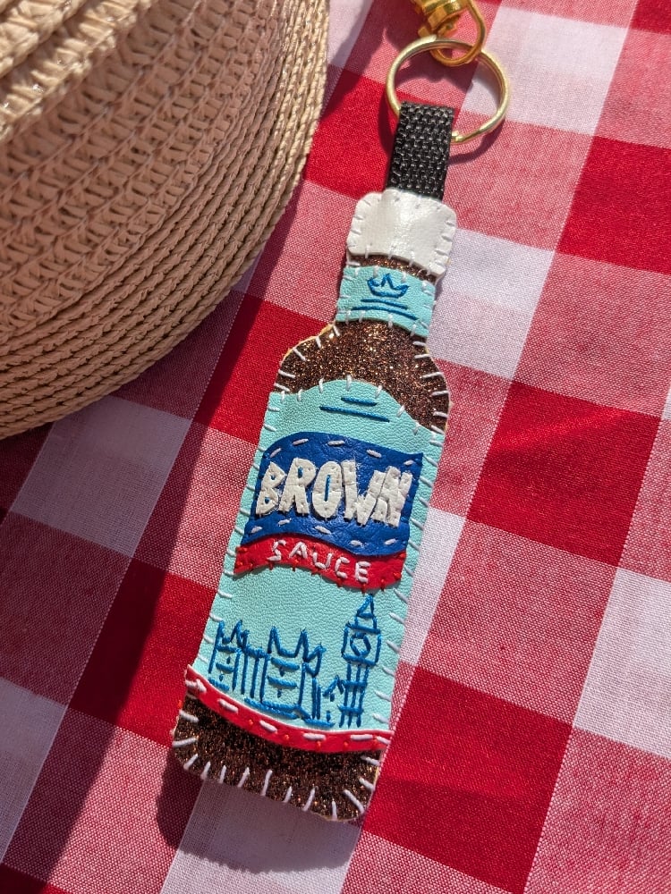 * Brown glittery brown sauce bottle with even more teeny tiny leatherette applique!
