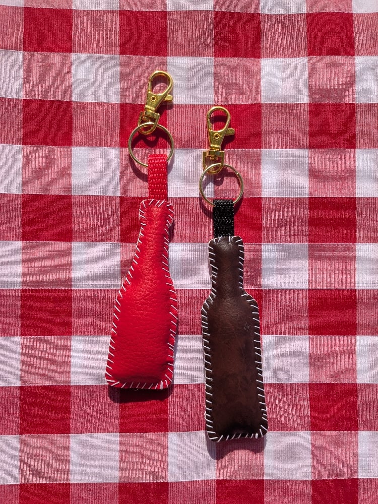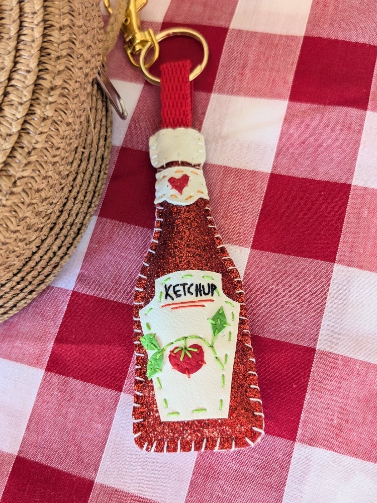 * Red glittery ketchup bottle, with teeny tiny leatherette applique