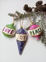 * Peace and Love measure approximately 8cm x 7cm, and Joy 12cm x 5cm at widest points